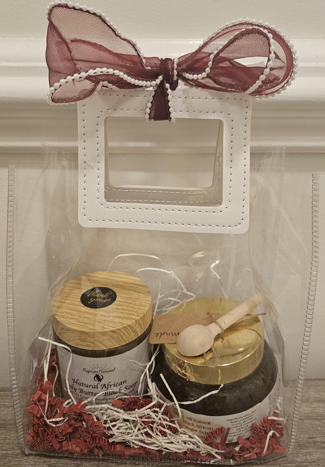 Pamper your skin this season with our all-natural holiday bundle! Handcrafted with authentic African black soap, shea butter, and organic essential oils for deep cleansing, gentle exfoliation, and rich hydration. Leaves skin soft, even-toned, and glowing — the perfect self-care or gift set for radiant holiday skin.